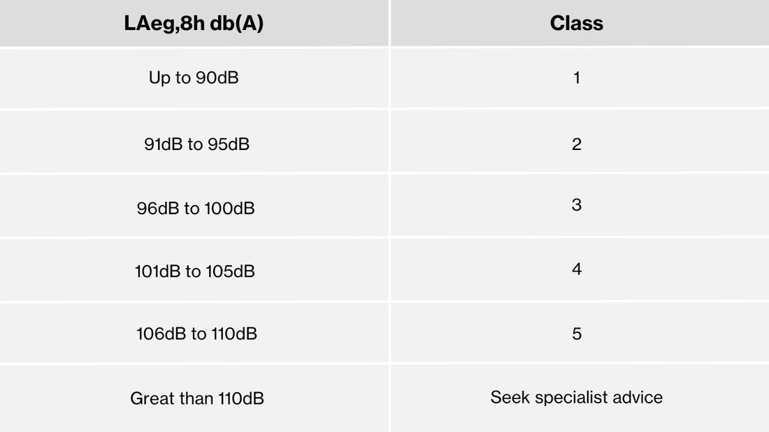 Under the Australian Standard AS/NZS 1270:2002, the Class is an easy way to choose a hearing protector appropriate to a noise exposure. The standard rates hearing protection into five classes, with Class 1 being the lowest level of protection and Class 5 being the highest level.