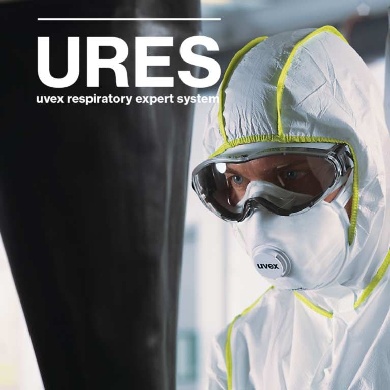 We have compiled a lot of helpful information for you in the uvex Respiratory Expert System (URES): From basic knowledge to practical tips, through to legal frameworks and standards, URES gives the answers to all essential questions about respiratory protection – right down to the most important one: "Which is the perfect face mask for me and my work?"
