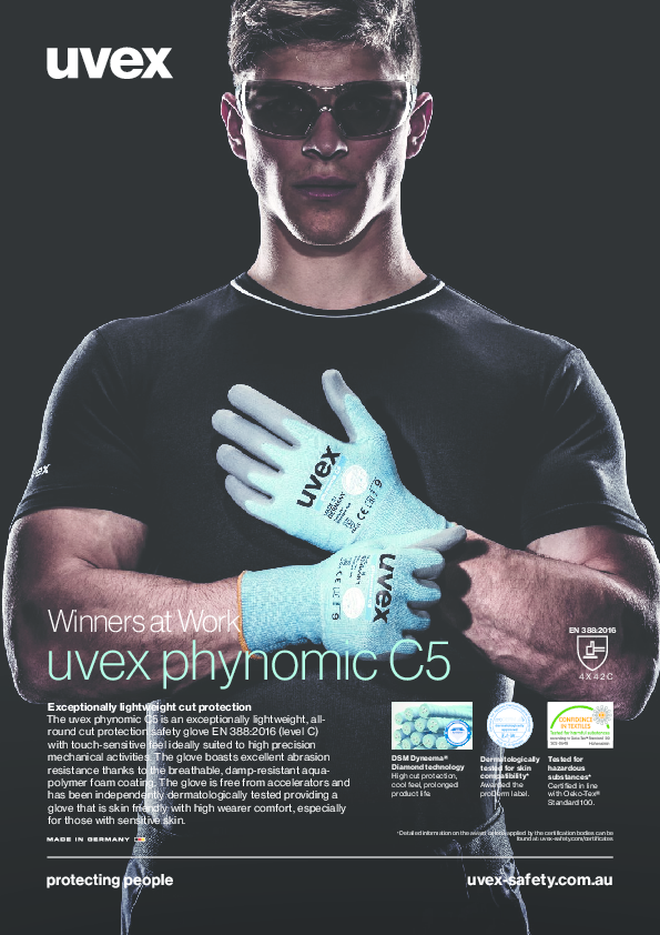 The uvex phynomic C5 is an exceptionally lightweight, all-round cut protection safety glove (level C) with touch-sensitive feel ideally suited to high precision mechanical activities. The glove boasts excellent abrasion resistance thanks to the breathable, damp-resistant aqua-polymer foam coating. The glove is free from accelerators and has been independently dermatologically tested making it suitable for allergy sufferers.